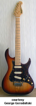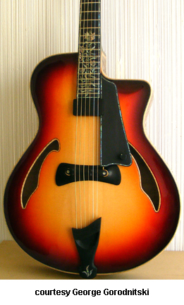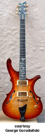 MASTER | Instruments currently built in Los Angeles, CA. | Luthier George Gorodnitski has been building fine handcrafted acoustic and semi-hollowbody electric guitars for a number of years. Electric guitars start at $3,200, semi-hollow guitars start at $4,200, and archtops start at $5,800. For further information, please contact luthier Gorodnitski directly (see Trademark Index). | |