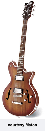 MATON | Instruments currently produced in Bayswater North, Australia since 1946. | Although Maton is best-known for their acoustic guitars, they also produce a line of semi-hollow and solidbody electric guitars. For a full company history on Maton, refer to the Blue Book of Acoustic Guitars. For more information, visit Maton's website or contact them directly (see Trademark Index). | | ELECTRIC |