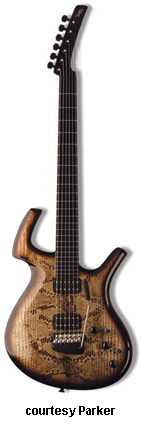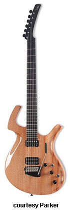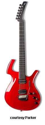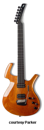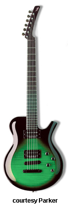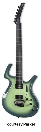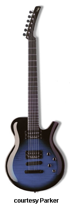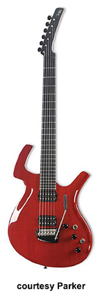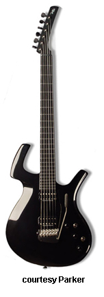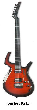 PARKER | ELECTRIC: FLY SERIES | All instruments in this series have the following specs: offset double cutaway carved poplar one piece body/neck, 24-fret carbon/fiber epoxy fingerboard, blackface peghead with screened logo, 6-on-a-side locking Sperzel tuners, and black hardware. Instruments are finished in a gloss urethane paint. | F | - fixed Parker bridge, 2 exposed humbucker pickups, master volume/volume/tone controls, 3-position switch, mfg. 1994 only. |