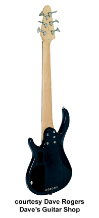 FURY II | - solid Agathis body with sculpted front and back contours, 34 in. scale, maple neck, dual expanding truss rod with adjustable wheel, rosewood fingerboard, 21-frets, die-cast bridge with machined steel saddles, mini tuners, 9V powered active pickup and electronics, 8 dB boost/cut for bass, mid, treble, thumb rest, satin chrome plated hardware, available in Black, Sunburst, Metallic Garnet Red, Metallic Dark Blue, or Metallic Titanium finishes, mfg. 1999-2003. |