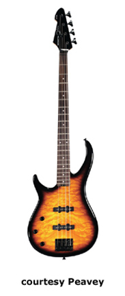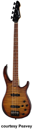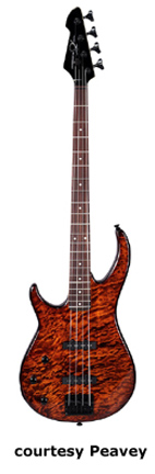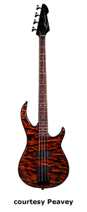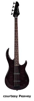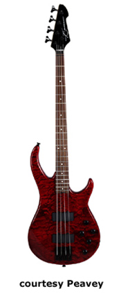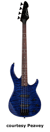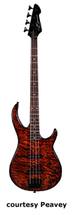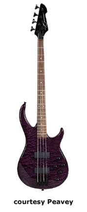 Millenium 4 BXP AC | - similar to the Millenium 4 BXP, except has an agathis body with a quilted veneer top, Hipshot tuners, two Peavey active pickups, and five knobs, available in Tiger Eye, Trans. Black, Trans. Black Violet, or Trans. Maroon finish, mfg. 2003-present. |
