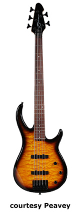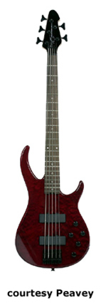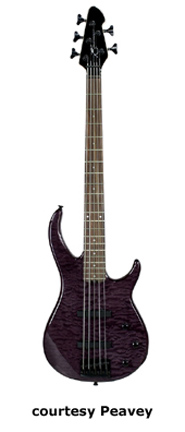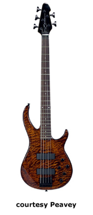 Millenium 5 BXP AC Five-String | - similar to the Millenium 5 BXP, except has an agathis body with a quilted veneer top, Hipshot tuners, two Peavey active pickups, and five knobs, available in Tiger Eye, Trans. Black, Trans. Black Violet, or Trans. Maroon finish, mfg. 2003-present. |