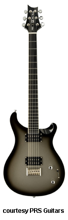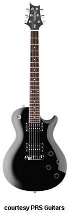 SE TREMONTI MODEL | - single cutaway solid mahogany body, white pastic body binding, one piece mahogany neck, and 22-fret white plastic bound fingerboard with dot inlays, black white plastic bound headstock overlay with "Tremonti SE" logo, PRS truss rod cover, PRS-designed combination bridge/tailpiece, two exposed Tremonti humbucker pickups, four knobs (two v, two tone), three-way pickup switch, available in Black or Platinum (disc.) finish, 25 in. scale, Cordura gig bag included, mfg. late 2002-04 due to litigation, reintroduced late 2005-present. |