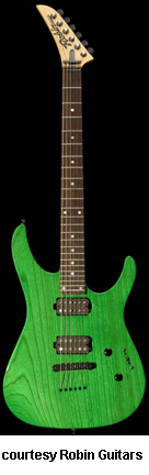MEDLEY STANDARD (II) | - offset double cutaway Strat-style swamp ash, poplar, or basswood body, bolt-on maple neck, 24-fret maple or rosewood fingerboard with pearl dot inlays, reverse hockey stick-style headstock with six-on-a-side Sperzel tuners, double locking Floyd Rose vibrato, two exposed Seymour Duncan humbucker (early models) or Rio Grande humbucker (later models) pickups, two knobs (v, tone), three-way pickup switch, black or chrome hardware, available in Blue, Cherry, Jet Black, Natural, Pearl Black, or Purple finish, mfg. 1991-present. |