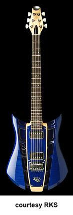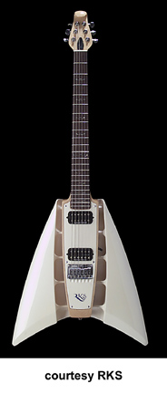 RKS GUITARS | Instruments currently produced in Oxnard, CA, and previously produced in Thousand Oaks, CA. Distributed by RKS Guitars. RKS has been producing guitars since 2000. | RKS Guitars was co-founded by Ravi Sawhney and Dave Mason. These guitars are hand-built in the U.S. and represent thousands of hours in designing and testing. The Open Architecture design on the guitar allows the guitar to be taylored to many different players. The front of the guitar is split into three parts. The body is a molded polymer and two open chambers are held together by aluminum or wood rods. By 2006, they had moved into a new factory and stepped up production quite a bit. For more information, contact RKS directly (see Trademark Index). | | ELECTRIC |