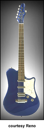 RENO, G.H. | Instruments currently built in Tulsa, OK. | Gerald H. Reno spent 10 years making a name for himself in the guitar field. In 1984, Jerry, already a working guitarist in Tulsa, OK, set out to produce his own line of custom built guitars. His idea was a better feeling, playing, and sounding guitar "geared to the experienced player." The modest guitar shop grew into a 4,000-square-foot factory, just off the famed Route 66 in Tulsa, OK. Standard features on G.H. Reno guitar models consisted of hard rock maple necks, select maple and pau ferro rosewood fingerboards, and hand-wound tuned pickups. Updated features included the "Glo-Dot" side markers, Sperzel tuners, and "Single Barrel" or "Double Barrel" pickups. | | ELECTRIC |
