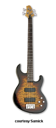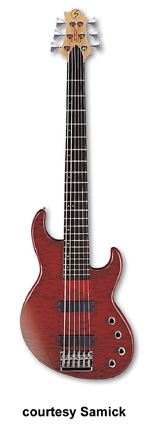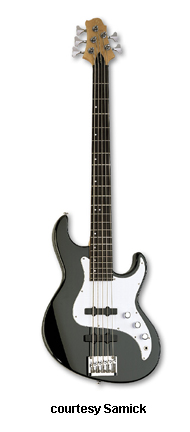 FN 3 5 | - offset double cutaway J-style alder body, 5-string, bolt-on neck, 22-fret rosewood fingerboard with offset dot inlay, P/J pickups, 3/2-per-side tuners, three knobs, chrome hardware, available in Metallic Red or Black finishes, disc. 2003. |