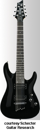Omen-7 Seven-String | - similar to the Omen-6, except, in seven-string configuration with 3/4-per-side tuners, available in Black Satin (disc.), Electric Blue (disc. 2007), Gloss Black, or Walnut Stain (disc.) finish, 26.5 in. scale, current mfg. |
