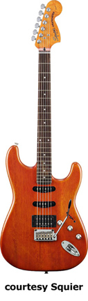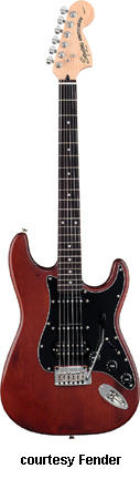 Satin Trans Stratocaster Fat/HSS (No. 032-1730) | - similar to the Standard Fat Stratocaster except has a satin finished mahogany body, matching headstock, no pickguard, and chrome knobs, available in Crimson, Honey, or Walnut Satin finish, mfg. 2005-06. |