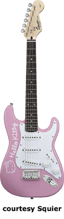 Hello Kitty Mini (No. 033-5101) | - similar to the Hello Kitty Stratocaster, except in a smaller 22.75 in. scale, and has three single coil pickups, mfg. summer 2006-present. |
