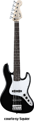 Affinity J Bass V Five-String (China Mfg. No. 030-1575) | - similar to the Affinity J Bass, except in five-string configuration and five-on-one-side tuners, available in Arctic White, Black, Metallic Blue, or Metallic Red finish, mfg. 2007-present. |