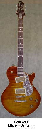 LJ | - single cutaway semi-hollow or solid mahogany body, western or eastern carved maple top, ivoroid body binding, set quarter sawn mahogany neck, 22-fret Madagascar rosewood fingerboard with dot inlay, Madagascar rosewood headstock overlay, three-per-side Sperzel tuners with pearloid buttons, tune-o-matic bridge, stop tailpiece, laminate pickguard, two humbucker pickups, three knobs (v, two tone), three-way pickup switch, available in various finishes with nitrocellulose lacquer, case included, current mfg. |