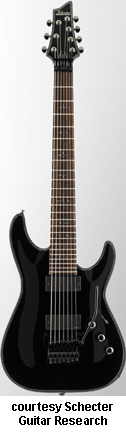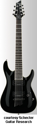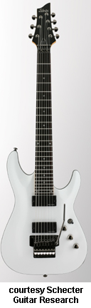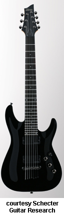 C-7 | -similar to C-1 model except, in seven-string configuration, available in Black, Gray Satin (disc. 2000), See-Through Blue (disc. 2000), See-Through Red (disc. 2000), Walnut Gloss (disc. 2000), or White (2007-present) finish, 26.5 in. scale, disc. 2000, reintroduced 2007-present. |