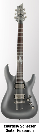 C-7 BlackJack ATX | - similar to the C-7 BlackJack, except has a three-piece mahogany/eboy neck, a single active symbol inlay at the 12th fret, two Seymour Duncan Active Black Out pickups, three knobs (two v, tone), a three-way pickup switch, black chrome hardware, available in Aged Black Satin or Aged White Satin finish, new 2008. |