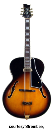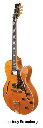 STROMBERG (CURRENT MFG.) | Instruments currently produced in Korea. Distributed by Stromberg Guitars in North Ft. Myers, FL. Stromberg has been producing guitars since 2001. Stromberg previously produced guitars in Boston, MA between circa 1906 and the mid-1950s. | Stromberg started building acoustic archtop guitars circa 1906, and by the mid-1950s when they stopped producing, they had established themselves as a premier guitar builder with a rich tradition. Since all Stromberg guitars built between 1906 and the mid-1950s were acoustic, refer to the Blue Book of Acoustic Guitars for a full listing. Between the mid-1950s and 2000, the Stromberg name was not used on guitars, and in 2001, Larry Davis resurrected Stromberg Guitars. Rather than building recreations of the vintage models Mr. Davis' goal is to offer the same techniques of vintage construction combined with modern production methods to produce a high quality line of models that are reasonably priced. The new Stromberg guitars are produced in Korea in accordance with strict material and quality standards. All guitars are finalized, fully set-up, and inspected at Stromberg's U.S. facility before being shipped. Major compnents are supplied by W.D. Music, Kent Armstrong pickups, Kluson tuning machines, and TonePros locking bridge/tailpiece sets on thinline models. For more information, visit Stromberg's website or contact them directly (see Trademark Index). | | ELECTRIC ARCHTOP |