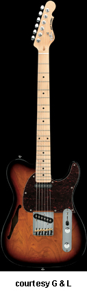 WILL RAY SIGNATURE SEMI-HOLLOW MODEL (TRIBUTE SERIES) | - single cutaway Telecaster-style swamp ash body, bolt-on hard rock maple neck, 22-fret rosewood fingerboard with pearl dot inlays, traditional G & L headstock, six-on-one-side tuners, G & L designed Saddle Lock bridge with a Hipshot B-Bender, pearl pickguard, three G & L Fullerton-built Magentic Field design Z-Coil pickups, two knobs (v, tone) and a five-way pickup switch mounted on a chrome plate, push/pull feature for additional pickup options, chrome hardware, available in Clear Orange finish, two Will Ray instructional DVDs and a pair of Will Ray trademark slide rings included, current mfg. |