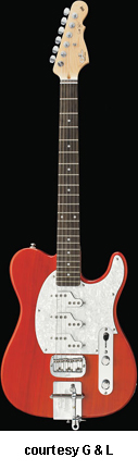 TRIBUTE SERIES BY G & L | ELECTRIC: TRIBUTE SERIES | On most G & L Tribute Series guitars, they are available as Standard models and Premium models. Standard models feature basswood bodies and solid color finishes and Premium models feature swamp ash bodies with Translucent or Sunburst finishes. Also, the Premium models carried a $50 upcharge over Standard models. Many Standard models have been discontinued leaving only the Premium versions and in these cases the Premium price is shown. | ASAT CLASSIC (TRIBUTE SERIES) | - single cutaway Telecaster-style basswood or swamp ash (Premium models only) body, bolt on hard rock maple neck, 22-fret maple fingerboard with black dot inlays or rosewood fingerboard with pearl dot inlays, traditional G & L-style headstock, six-on-one-side tuners, traditional steel boxed bridge with individual saddles, tortoise or pearl pickguard, two traditional sized Fullerton-built G & L single coil pickups, two knobs (v, tone) and a three-way pickup switch mounted on a chrome plate, chrome hardware, available in 3-Tone Sunburst, Black, Blueburst, or Natural Gloss finish, mfg. 2003-present. |