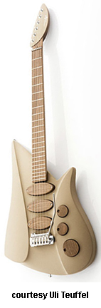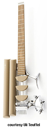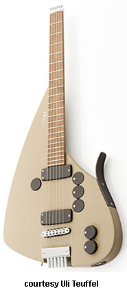TEUFFEL | Instruments currently built in Germany since 1995. Direct sales only through Teuffel. | Ulrich "Uli" Teuffel's guitar models are unconventional new perspectives on the traditional design of the electric guitar. The flagship Birdfish model was first introduced in spring 1995 at Frankfurt MusikMesse. All models are custom-built in Germany, and feature top-rate construction details. Teuffel models feature moveable Alnico pickups, so the magnetic sources of tone generation can thus be varied for a wide range of tonal customizing. Teuffel does not sell to dealers, because he feels personal contact is very important when purchasing one of his guitars. For more information or purchase information, contact Teuffel directly or visit his website (see Trademark Index). | | ELECTRIC |