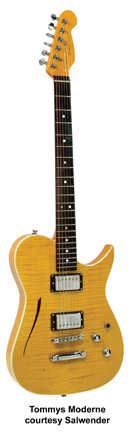 TOMMY'S SPECIAL GUITARS | Instruments currently built in Viersen, Germany. Previously distributed in the U.S. by Salwender International of Orange, CA. Distributed in Europe by Tommy's Special Guitars of Viersen, Germany. | Luthier Thomas Metz has been handcrafting high quality solid and semi-solid electric guitars for a number of years. The distinctive feature of the Tommy's Special Guitars model is the systematic respect for the wood and physical sound properties. Each instrument is the technical synthesis of these characteristics. Metz' basic model features an alder, ash or mahogany Strat- or Tele-style body, rock maple neck with rosewood fingerboard, chrome tuners, tunomatic bridge/stop tailpiece (or vintage-style Gotoh tremolo), and EMG pickups. Custom options include a semi-acoustic body with quilted maple top, carved quilted maple top, or bird's-eye maple neck. | |