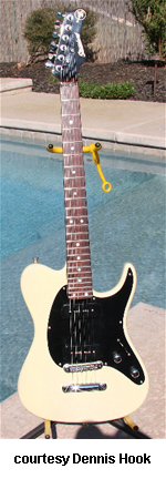 RAY BENSON CUSTOM (MODEL VARB2) | - single cutaway alder body, quilted maple top, maple neck, 25.5 in. scale, 22-fret maple (or rosewood or ebony) fingerboard, 6-on-a-side tuners, fixed bridge, chrome hardware, violin-shaped pearloid pickguard, humbucker/Hot Rail/single coil pickups, volume/tone controls, 5-way selector, disc. |