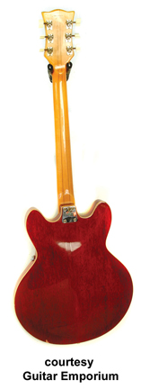 CONSORT (FIRST SERIES) | - similar to the Super Ace, except has smaller rounded off horns, a Bigsby-styled tremolo system, Sycamore neck and rosewood fingerboard, available in Red or Sunburst finishes, mfg. 1961-63. |