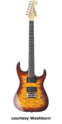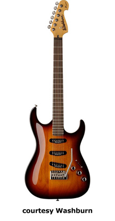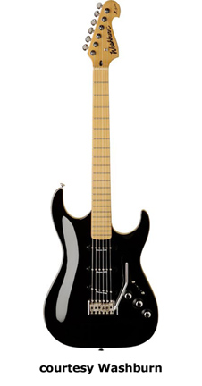 X33 | - offset double cutaway Strat-stylesolid carved alder body, bolt-on maple neck, maple or rosewood fingerboard with X inlay, 6-on-one-side tuners,three Washburn Shaman single coil pickups, Fulcrum tremolo, three knobs, five-way switch, chrome hardware, available in Tobacco Sunburst or Black finish, mfg. 2004-present. |