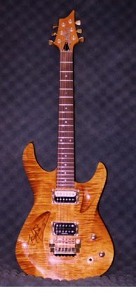 W. PAUL GUITARS, INC. | Instruments currently built in Waukesha, WI. | Designer William Paul Jarowsky's objective was to construct a guitar which enhanced the sound quality as well as the playability. Jarowsky developed the patented Soundport System electric guitars, which features a contoured semi- hollow body with top soundports hand-sculpted into the hollow chambers between the pickups. All models feature a through-body neck, and contoured bodies. The Natural is the original version of Jarowsky's design, and features a high gloss, satin, or hand-rubbed finish that brings out the grain patterns of the wood. The Plus model features a variety of Translucent stains on an all maple or all ash body; the Ultra features high gloss solid finishes. Jarowsky's Limited and Limited Special models feature selected and exotic woods in their constructions. Currently, the Superior Classic (with elaborate, full length vine inlay) retails for $9,000, including Ameritage case. For additional information regarding wood availability (Timeless Timber wood is sawn from sawmill logs submerged underwater until 1991), and pricing, contact W. Paul Guitars directly (see Trademark Index). | |